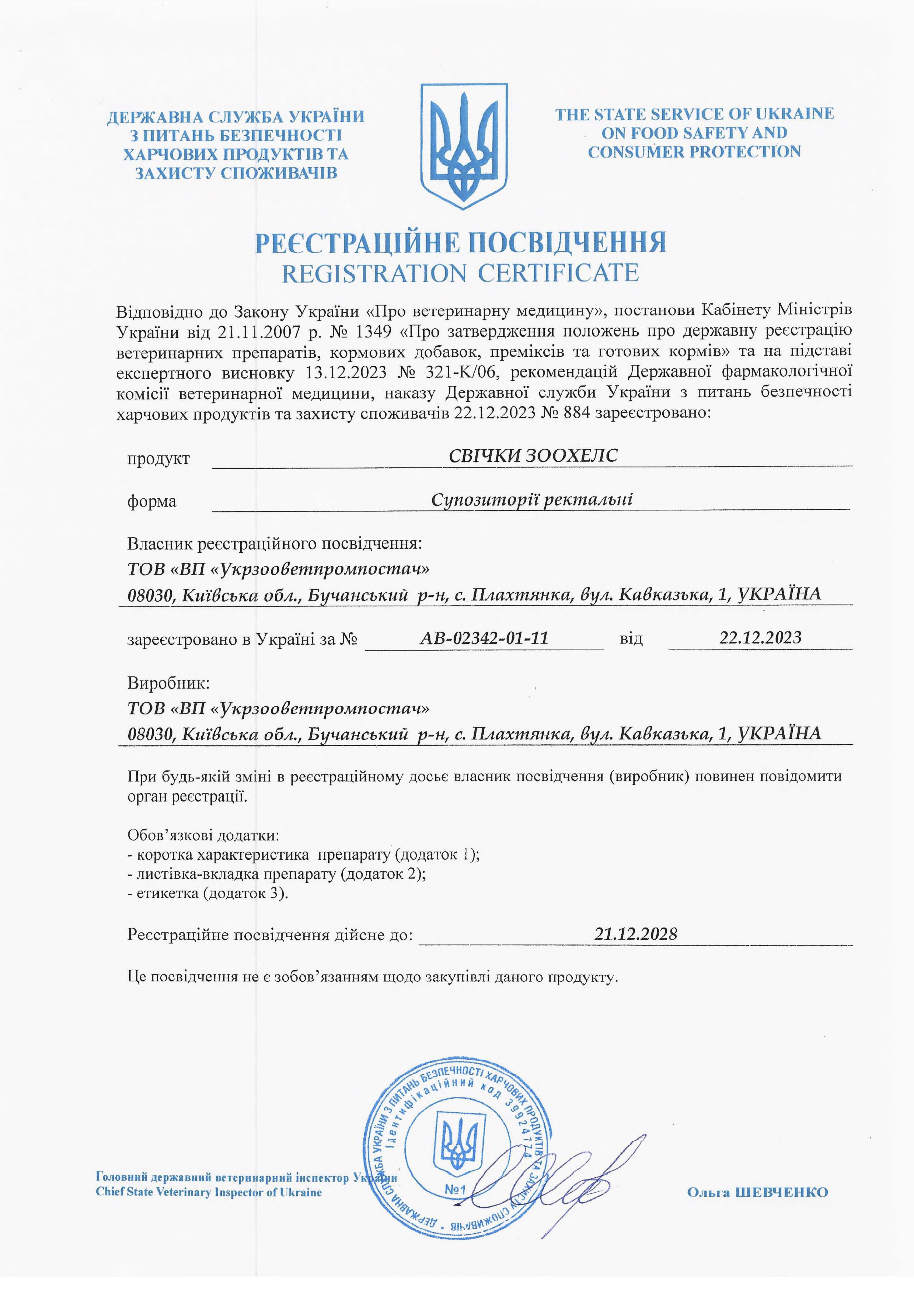 Завантажити Інструкцію СВІЧКИ ЗООХЕЛС (супозиторії ректальні)