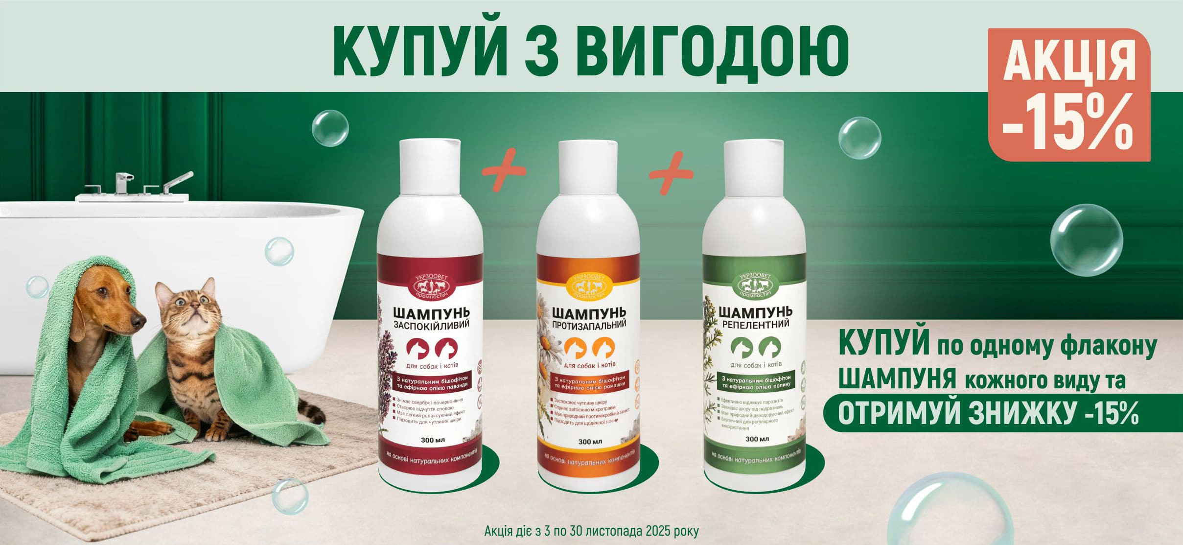 НОВАЯ ЛИНИЯ ШАМПУНЕЙ ДЛЯ СОБАК И КОШЕК ОТ УКРЗООВЕТпромпостач